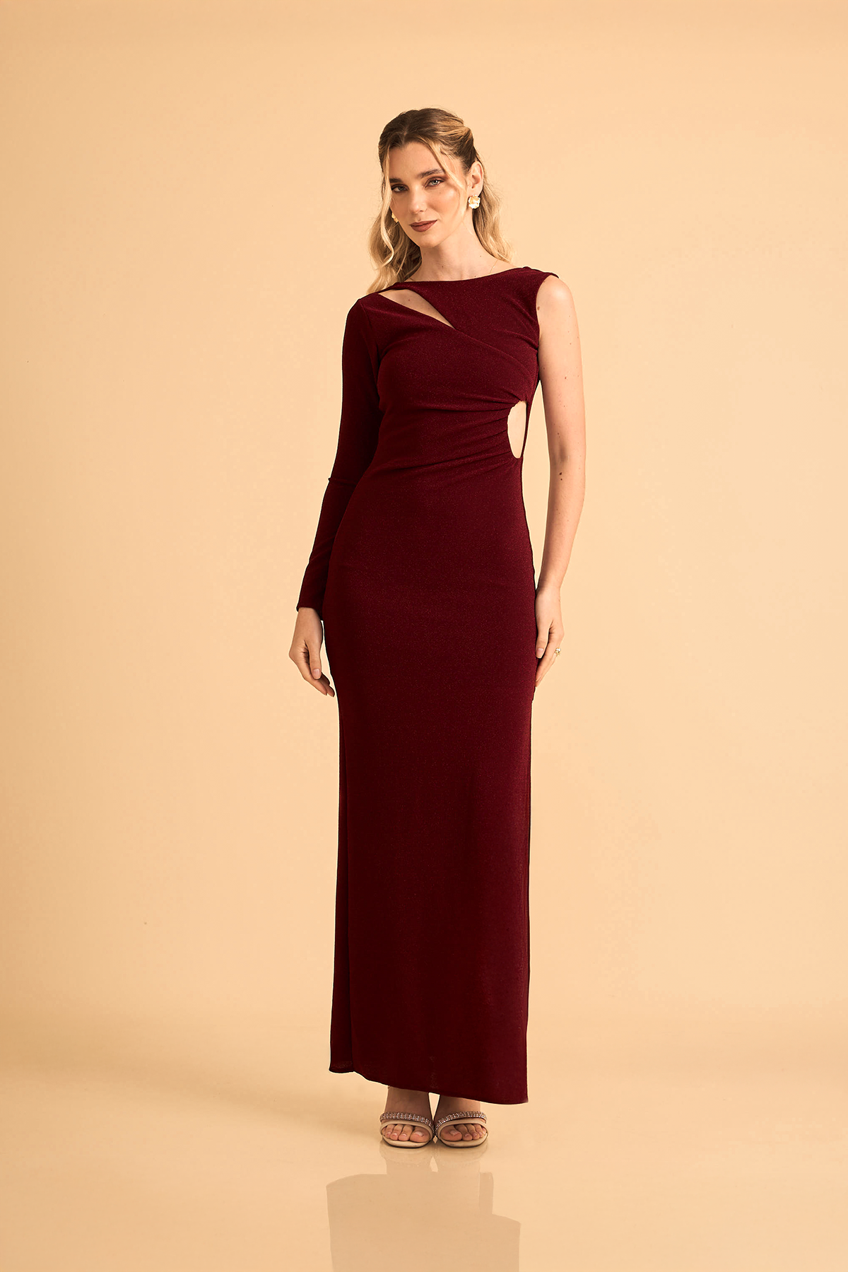 Destaca con este elegante vestido de corte ajustado, su diseño asimétrico con un solo hombro y abertura en el escote aporta un toque moderno y sofisticado.